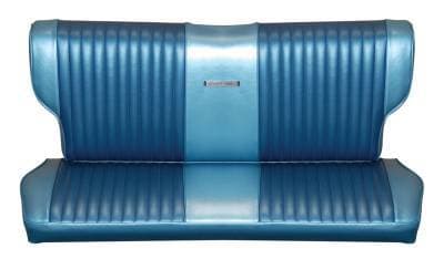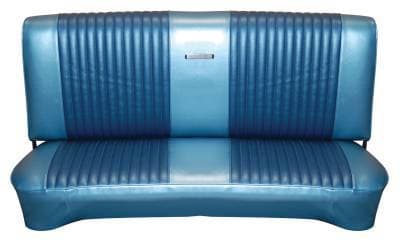 Distinctive Industries 1965 Falcon Seat Upholstery is a high quality reproduction of the original. We offer the original Sierra grain in 32 oz. vinyl, with original style vertical patterns sewn as original. This set includes the seat back panels. Metal emblems not included.