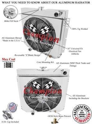 Four Row Aluminum Radiator Combo For: Mustang, Falcon, Cougar, Fairlane, Comet Various Years Monster Core mc339combo