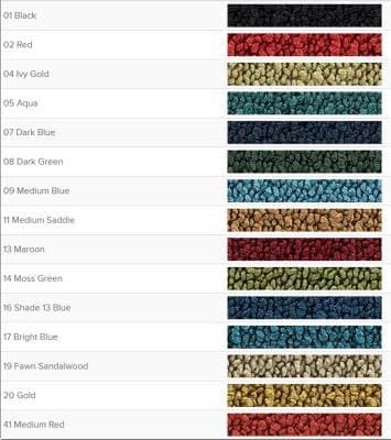 This quality carpet from ACC is custom-molded for superior fit. These are not off-the-shelf universal carpet kits that do not fit properly. ACC uses the original floor pan to mold the carpet so that it provides perfect fit. Trim Parts uses Dorsett roll goods, the highest quality automotive carpet available. They also use a "poly-backed" carpet, vs. latex, as the poly-back holds its mold and fit where the latex will not.